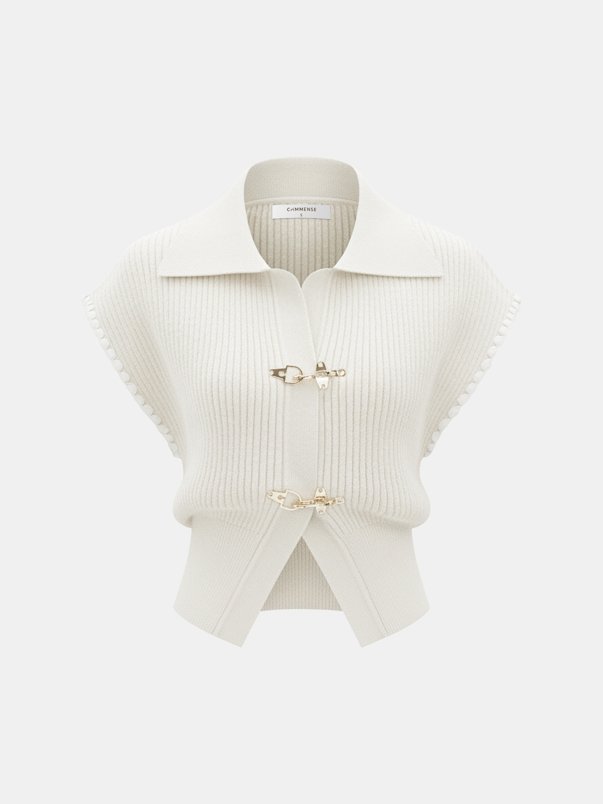 Metal Clasp Contrast Trim Collared Knit Vest