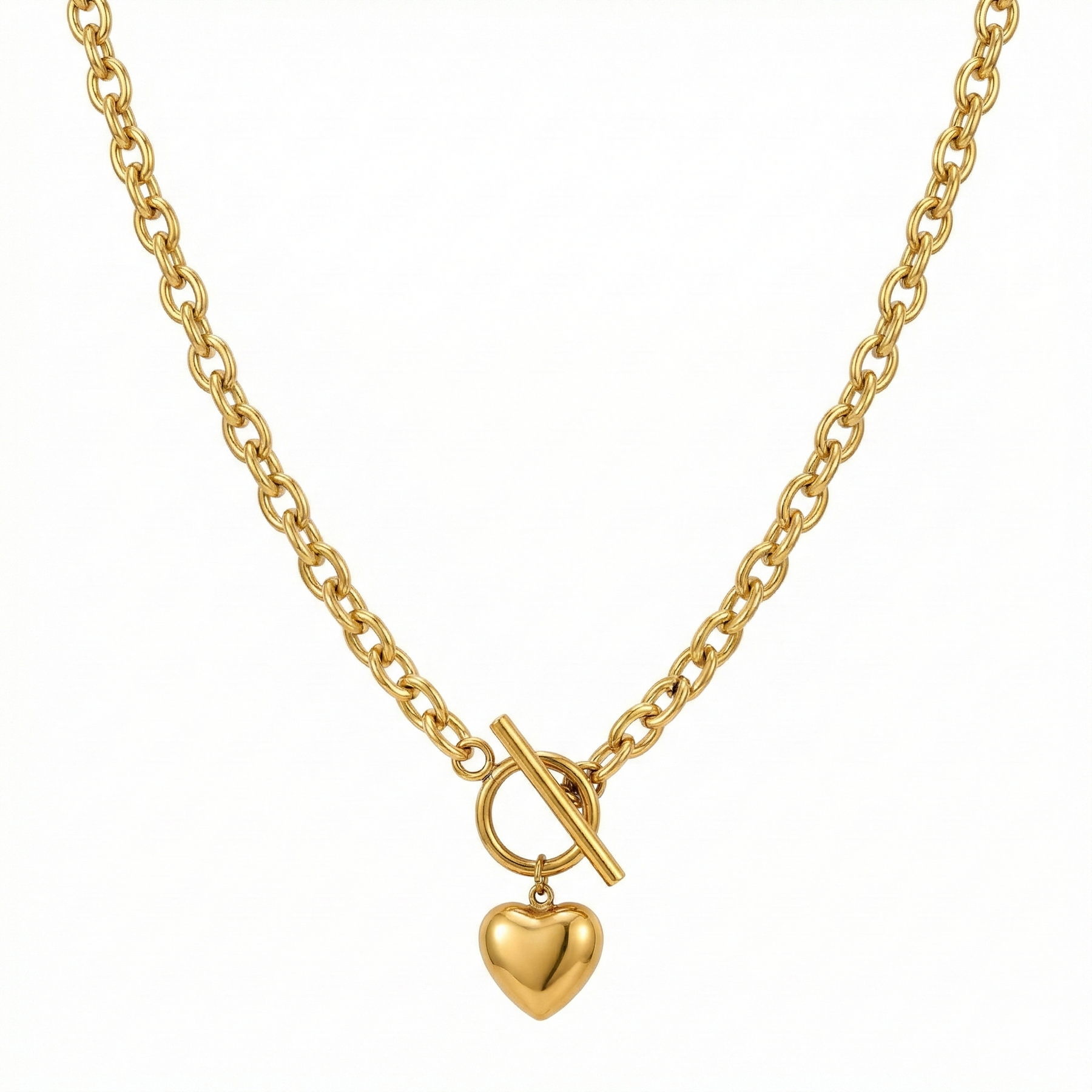 Fall in love with our Heartened Chunky Necklace! This eye-catching piece pairs a chunky chain with a sweet heart charm, perfect for the fashion-forward lady who loves to mix edgy with romantic. It's the perfect way to add a dash of drama to any outfit!