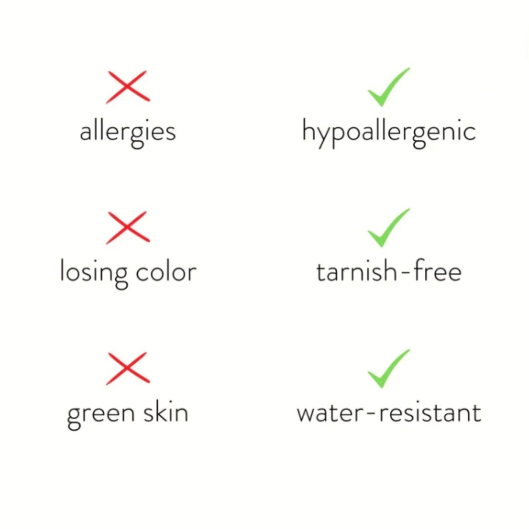 Made with waterproof stainless steel, you never need to worry about fading or tarnishing jewelry ever again.